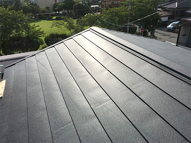 金属屋根材の中でも近年人気の高い素材となります。経年とともに錆てしまう欠点もありますが、耐久性、デザイン性等は年々良くなっております。